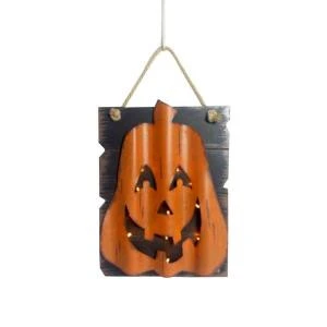 16 in. LED Wooden and Iron Pumpkin Hanging Wall Decor-1704003055 – Description