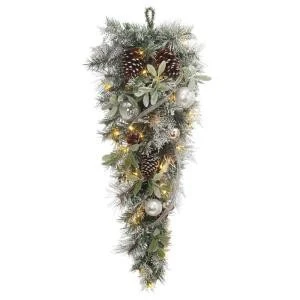 36 in. Battery Operated Snowy Silver Pine Artificial Teardrop with 36 Clear LED Lights-2258350HD – Description