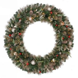 48 in. Battery Operated Roosevelt Artificial Wreath with120 Clear LED Lights-GD40M3V90L00 – Description