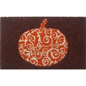 Entryways Scrolled Pumpkin 17 in. x 28 in. Non-Slip Coir Door Mat-P2038 – Description