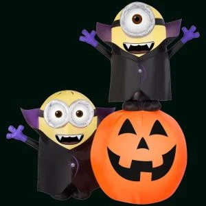 Gemmy Gone Batty 6 ft. H Inflatable Minions with Pumpkin Scene-59406X – Description