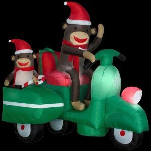 Home Accents Holiday 5 ft. Airblown Lighted Large Sock Monkeys in Scooter Scene-85931X – Description