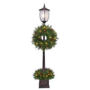 Home Accents Holiday 7 ft. Pre-Lit Lantern Post Artificial Tree with Berry, Pinecone and Twig-16HD0121 – Description