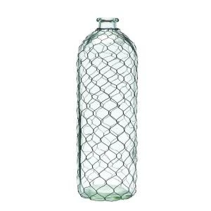 - Clear glass bottle wrapped in chicken wire for added rustic elegance