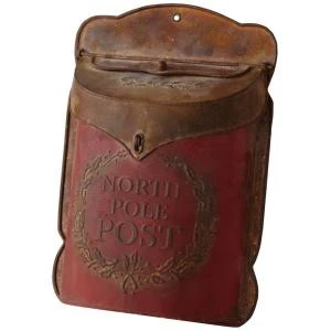 - Tin post box in distressed red finish