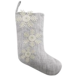 Martha Stewart Living 16 in. Silver Polyester Snowflake Christmas Stocking-9717500250 – Description