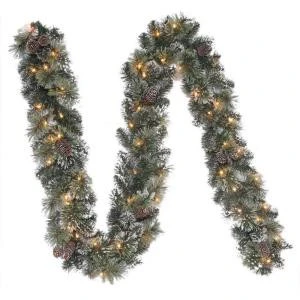Martha Stewart Living 9 ft. Frosted Pine Artificial Garland with 50 Clear Lights-GT90M2R70C02 – Description