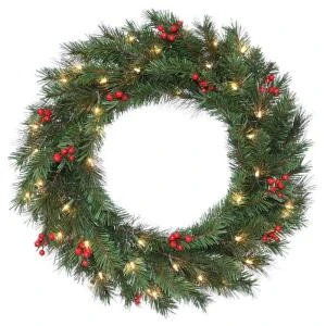 National Tree Company 30 in. Noble Artificial Wreath with 50 Clear Lights-DC3-162L-30W – Description