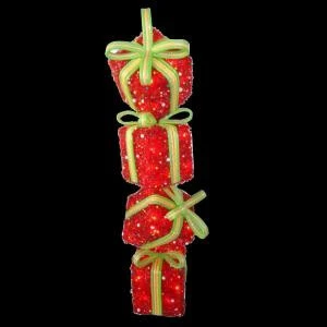 National Tree Company 34 in. Red Tinsel Gift Stack with 50 Clear Lights-MZSG-34LO – Description