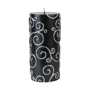Zest Candle 3 in. x 6 in. Black Scroll Pillar Candle Bulk (12-Case)-CPS-002_12 – Description